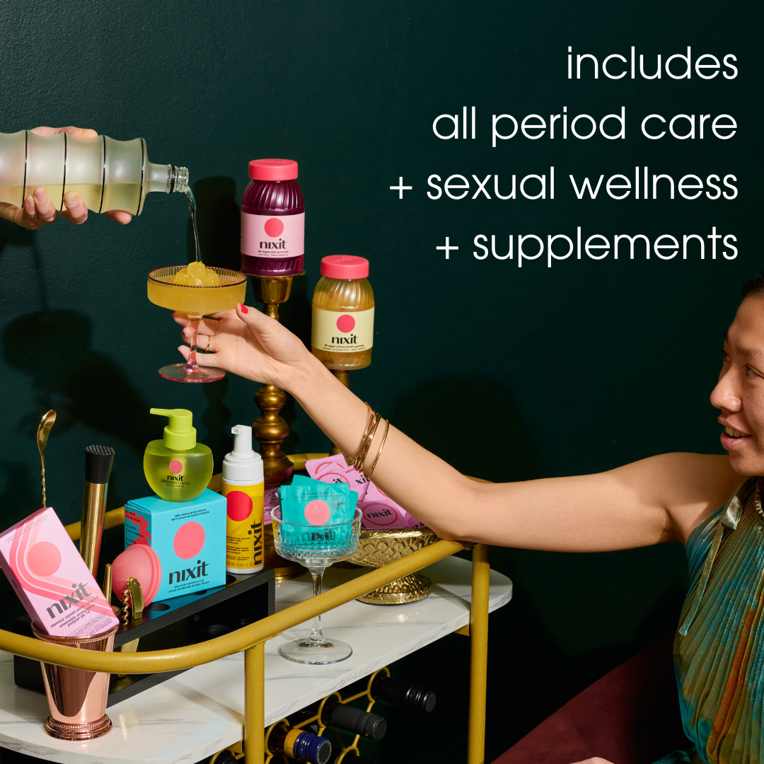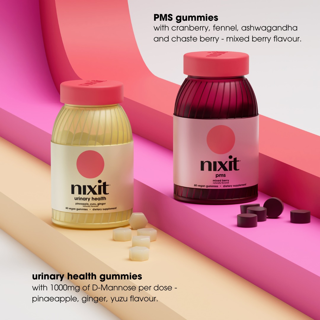 - nixit PMS supplements (60 ct) - gummies with key nutrients traditionally used to support mood, bloating, and overall cycle comfort.