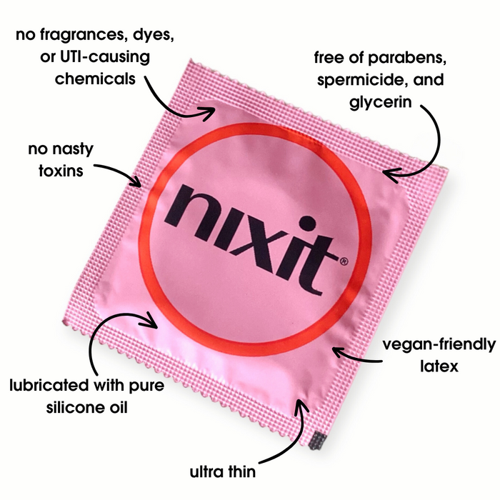 Thoughtfully crafted, nixit natural latex condoms are free of parabens, glycerin, spermicide, fragrances, and UTI-triggering irritants - changing the game for safer, cleaner intimacy.