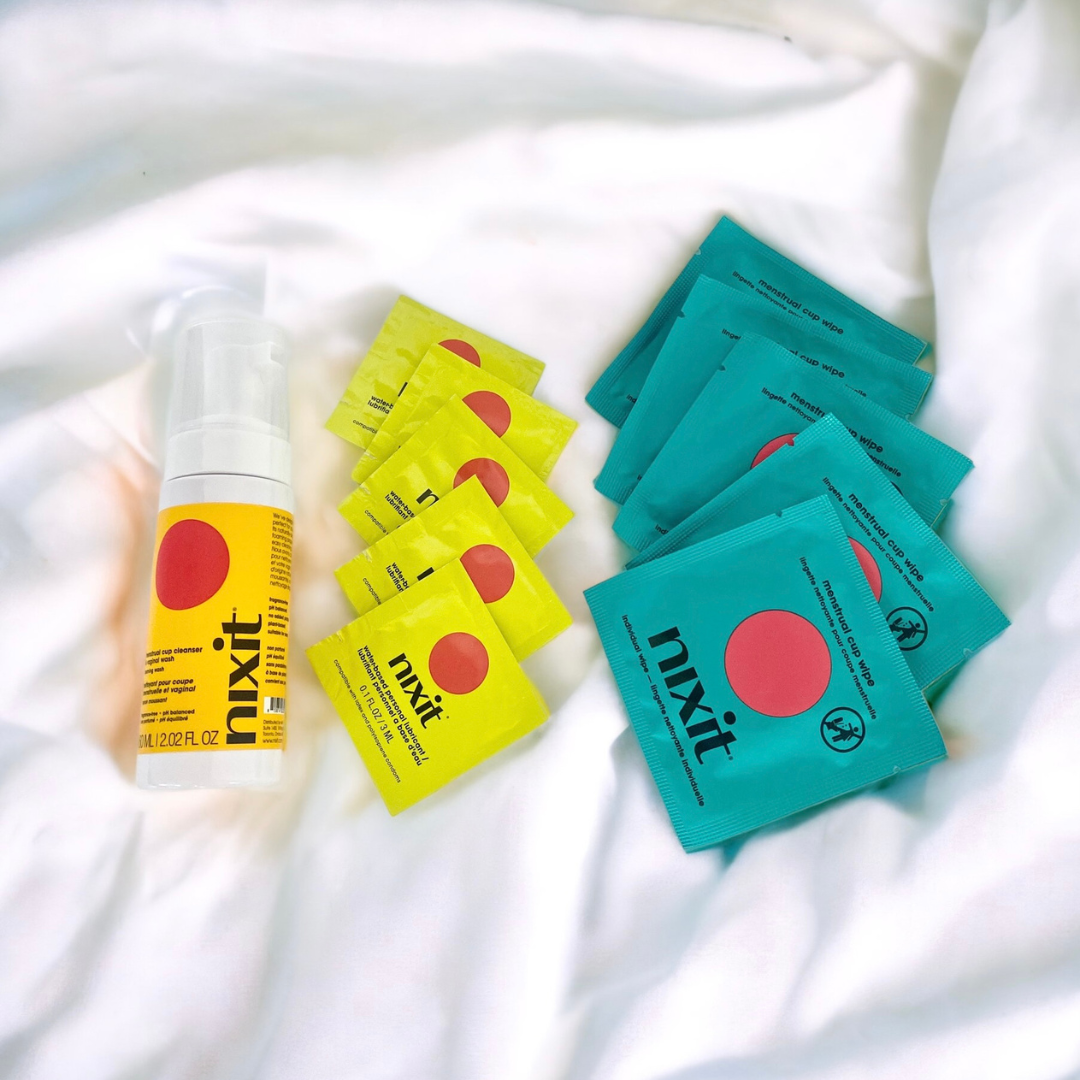 - nixit travel-size wash - our foaming wash that's perfect for your cup and your vulva